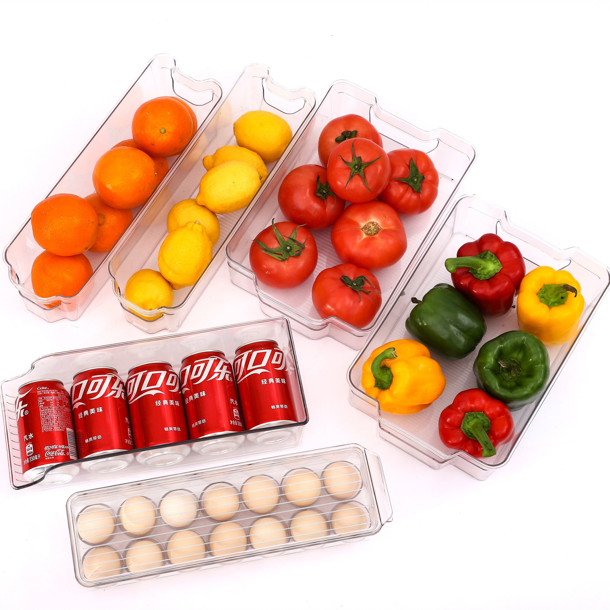 6 pieces Refrigerator Organizer Refrigerator Storage Set Plastic Transparent Refrigerator Storage Box Refrigerator Drawer Food Vegetable Beverage Egg Storage