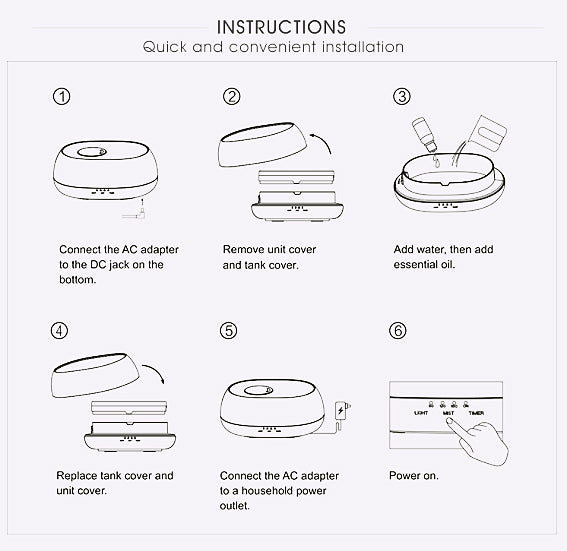 1. IR Remote Control(mist/timer/light control)