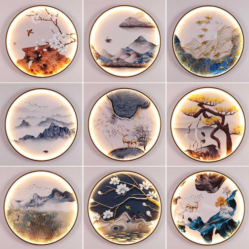 Art Atmosphere Aisle Tea Room Living Room Background Wall Painting Hanging Lamp