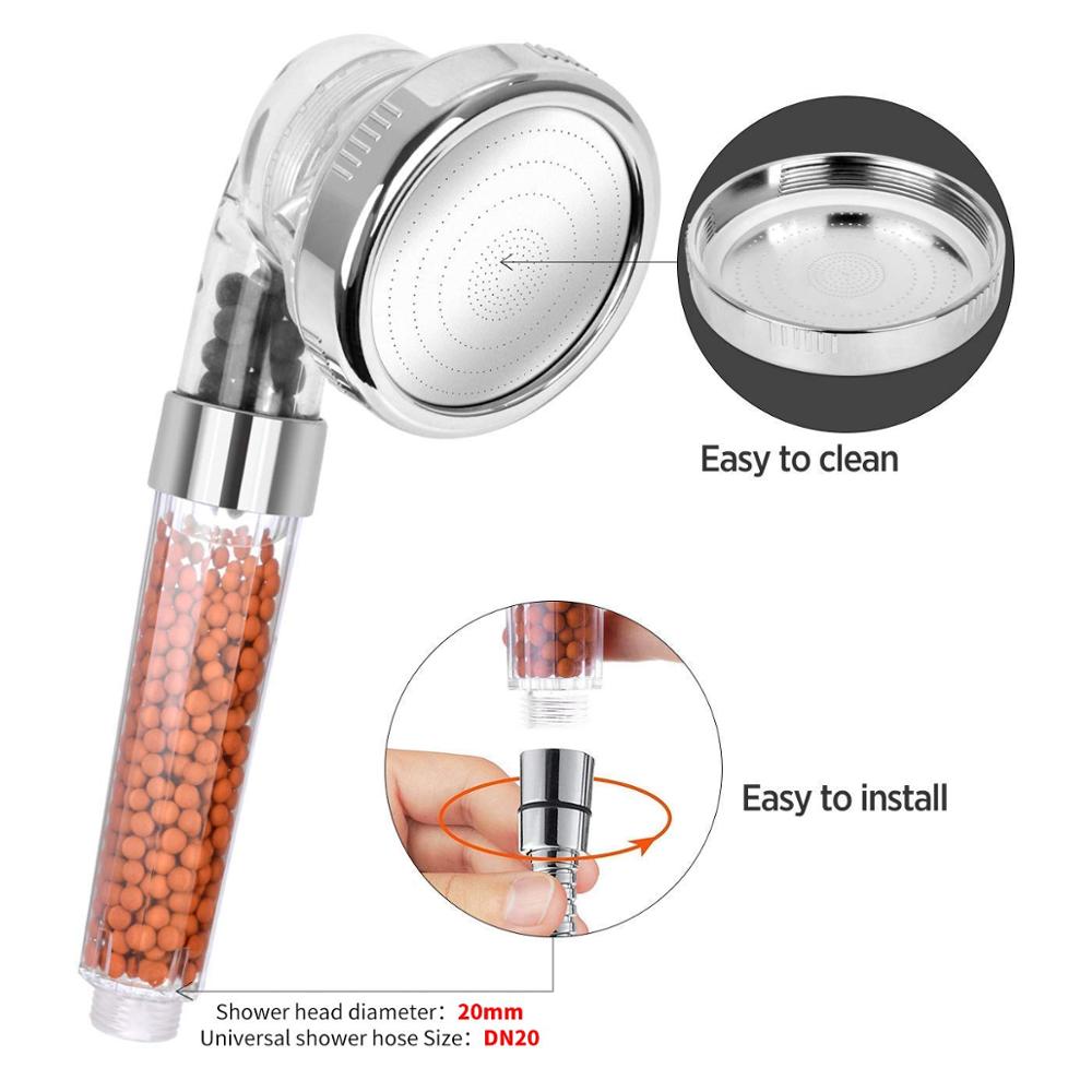 SPEZloog Bathroom Shower 3 Modes Adjustable Jetting Rainfall Spa Saving Water Mineral Ball Anion Filter High Pressure Shower HeadCIFICATIONS