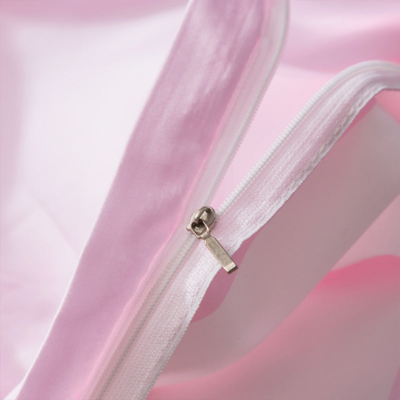 Complete your bedroom ensemble with our four-piece set, which includes a quilt cover, sheet, and two pillowcases. This ensures a seamless and coordinated look, adding a touch of elegance to your bedroom decor. The matching design and color scheme of the four-piece set create a harmonious and inviting ambiance.