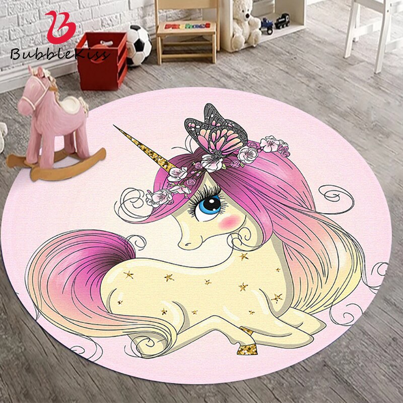 Pink Round Carpet Bedside Area Rugs For Living Room Bedroom Decor Carpet Unicorn Pattern Modern Home Decoration Rug