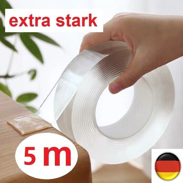 Doppelseitiges Klebeband Transparent Nano Band Tape beidseitig extra stark 5m