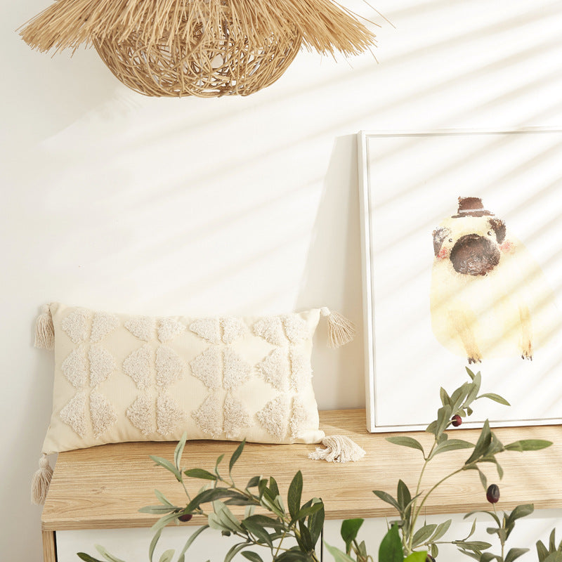 Featuring a stunning pattern of black background with white diamond or white background with triangle or black background with white triangle, these pillow cases will instantly elevate the look of any room. The tassel weaving process adds a unique and stylish touch to the design, making these pillow cases a true statement piece.