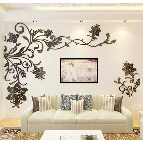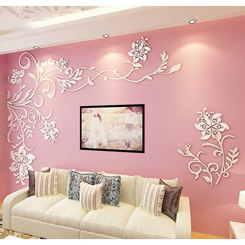 European Style 3D Flower Tree Wall Sticker Living Room Decorative Decals Home Art Decor Poster Solid Acrylic Wallpaper Stickers