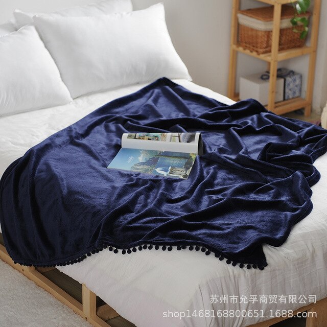 This Flannel Blanket with Pompom Fringe is the perfect addition to your bedding collection. Made with 100% polyester and designed with a lightweight and cozy feel, this soft throw blanket is suitable for all seasons. Its solid pattern type and coral fleece fabric make it a stylish addition to any room. The rectangle shape and Europe style make it easy to use for picnics, travel, at home, in hotels, and on airplanes. This blanket is easy to care for with mechanical wash and suitable for adults of all ages. Get your hands on this must-have blanket and enjoy its warmth and comfort all year round.