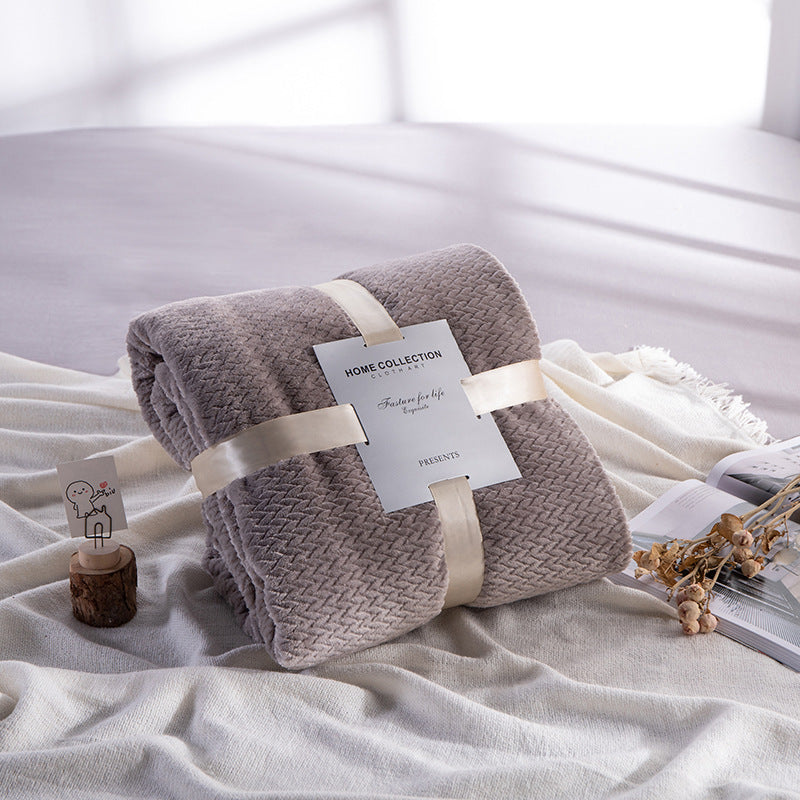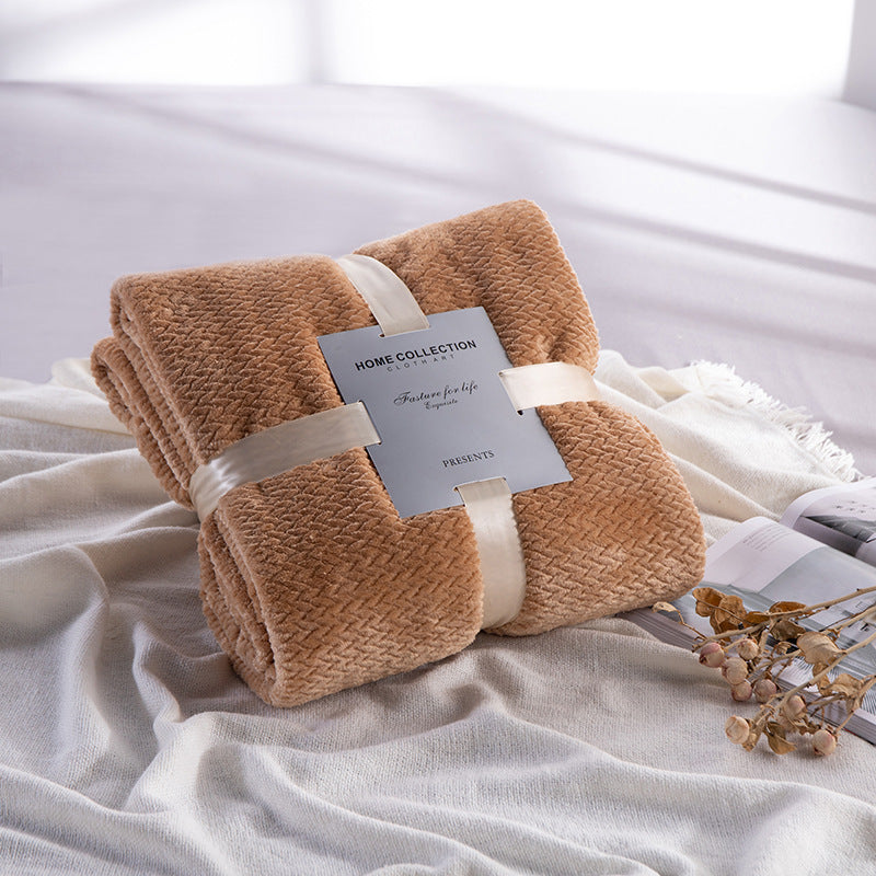 Introducing the Flannel Thick Wheat Ear Blanket, a premium coral fleece blanket that offers unparalleled comfort and warmth. Made from 100% fat fiber, this blanket is not only incredibly soft but also eco-friendly.