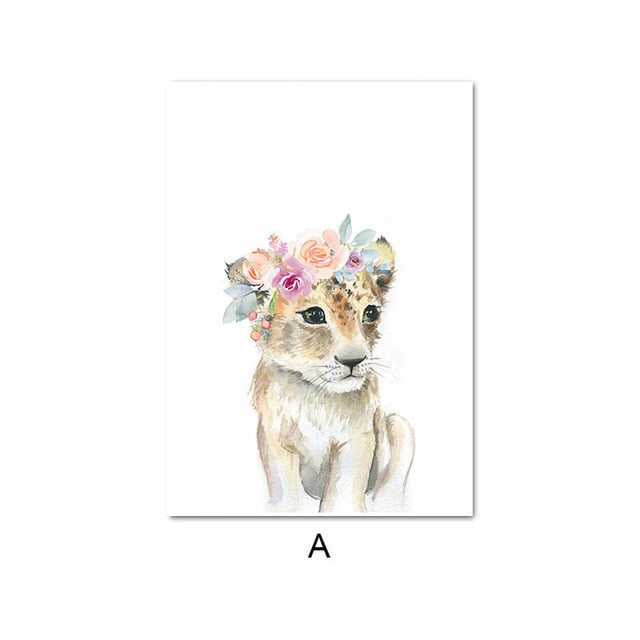 Floral Safari Animal Lion Elephant Canvas Painting Nursery Poster Print Wall Art Pictures Nordic Kids Baby Bedroom Decoration