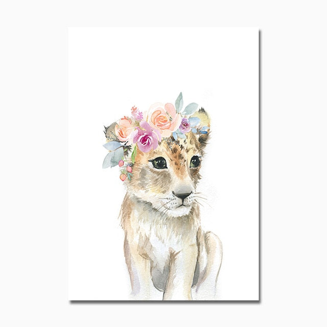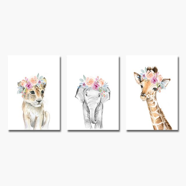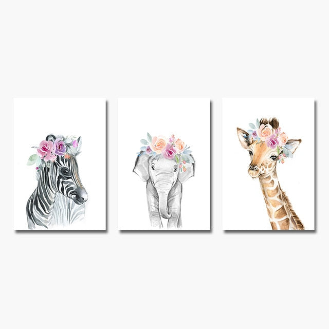 Flower Animal Canvas Poster Lion Zebra Elephant Giraffe Nursery Wall Art Print Painting Wall Pictures Kids Baby Bedroom Decor