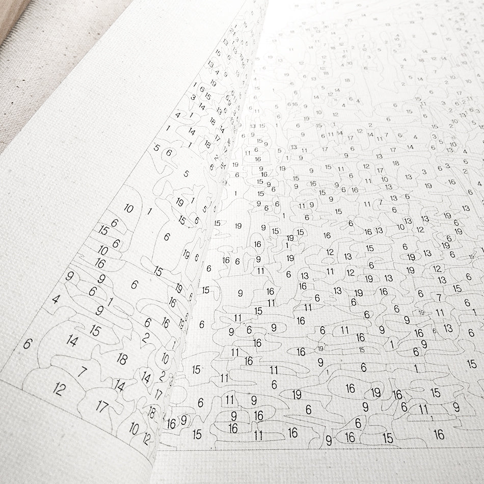 - What's in: Linen canvas; 3 brushes; 1 set of acrylic paint; instruction file; reference table; frame; pendant; screw