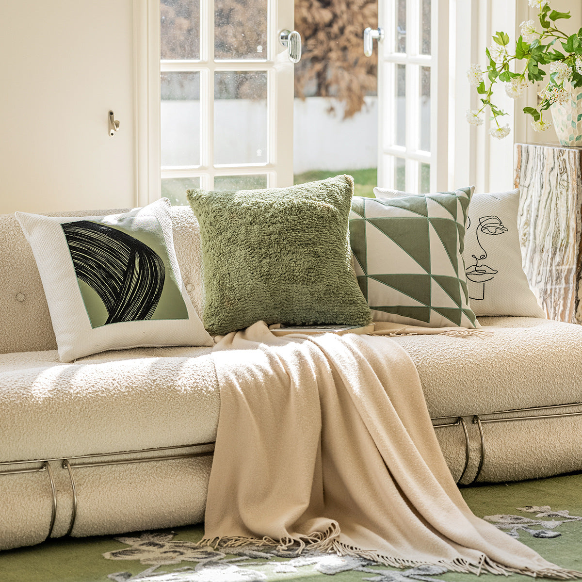 With a variety of patterns to choose from, including solid colors, geometric patterns, and abstract paintings, you can find the perfect design to match your personal style and décor. The available colors include Scream, Earrings Girl, Sage Green, and Fox Fur Olive Green, all measuring 45 * 45cm.