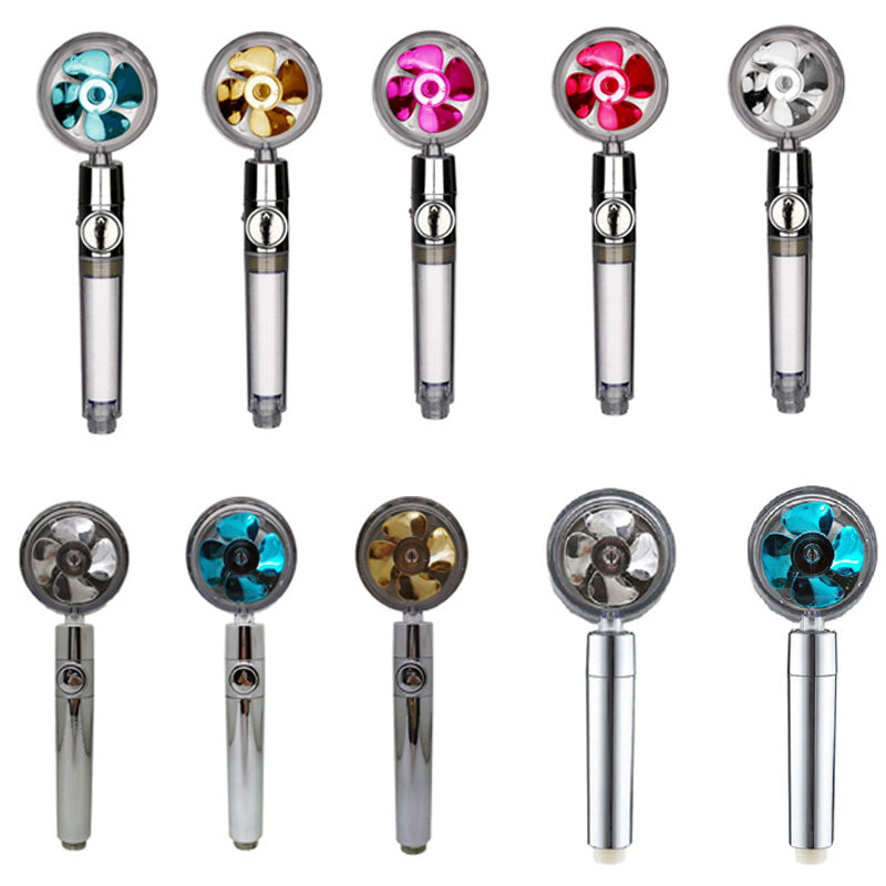 Turbo Propeller Water Saving Shower Head and Holder High Preassure Showerhead Rainfall with Fan Bathroom Accessories