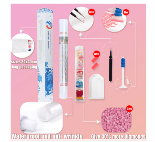 Choose from a variety of sizes to suit your needs and preferences. We offer full square sizes in 20X30cm, 30X45cm, 40X60cm, 45X70cm, 50X75cm, and 60X90cm. Additionally, we also provide full circle sizes in 20X30cm, 30X45cm, 40X60cm, 45X70cm, 50X75cm, and 60X90cm. No matter the size, each diamond painting is meticulously crafted to ensure a high level of detail and precision.