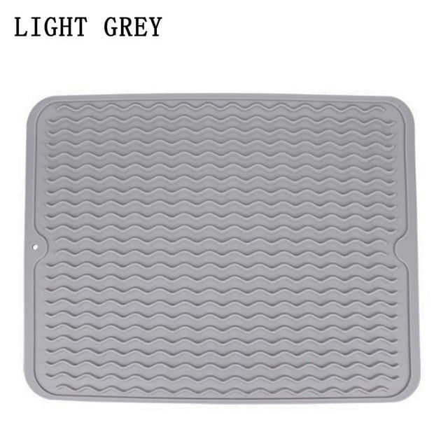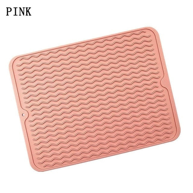 Introducing our Large Multifunctional Silicone Drying Mats - the perfect solution for a busy kitchen! These mats are designed to provide heat insulation, pot holder protection, and efficient dish and cup draining. Made from eco-friendly materials and stocked for your convenience, our Silicone Drying Mats are available in three stylish colors - pink, grey, and black.