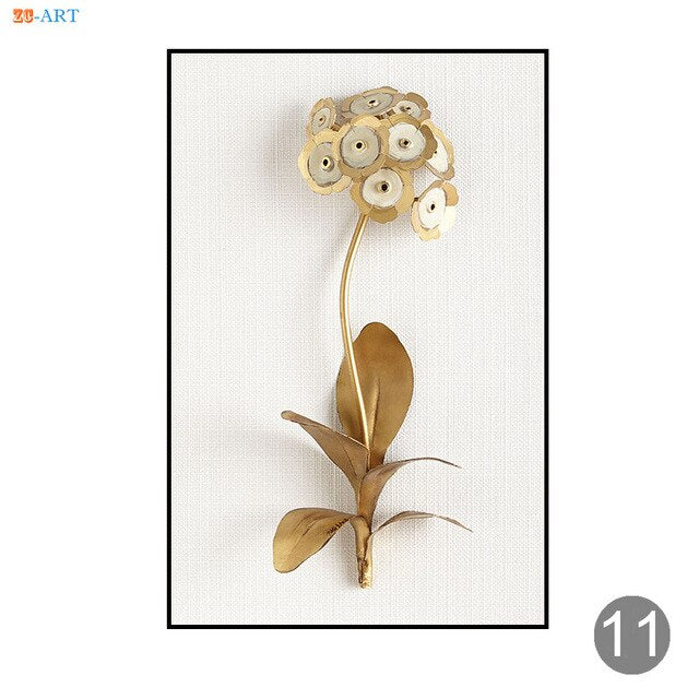 Minimalist Canvas Painting Golden Lilac Hyacinth Orchid Tulip Botanical Prints Flower Poster Modern Wall Art Decoration Pictures