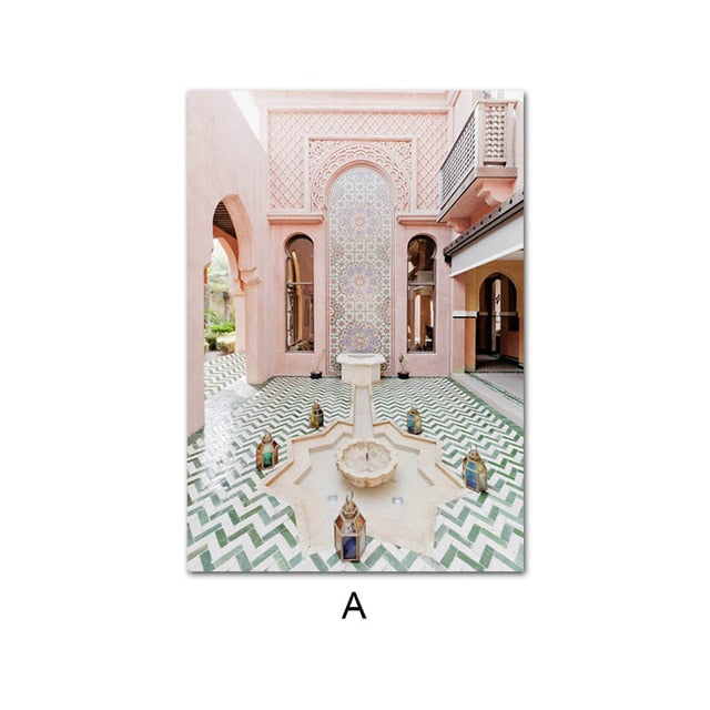 Morocco Arab Architecture Islamic Poster Landscape Canvas Print Protea Flower Balloon Wall Art Painting Botanical Picture Decor