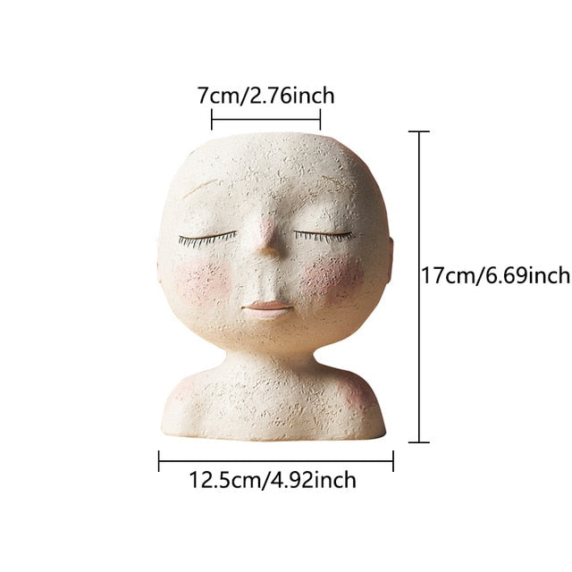 Introducing the Nordic Human Head Vase Planter Pots, a unique and artistic addition to your home decor. These doll-shaped sculpture resin portrait flower pots are not only functional but also serve as a stunning piece of art. Crafted with attention to detail, these head-shaped vases are perfect for displaying your favorite succulents or other green plants.