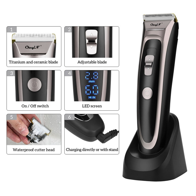 CkeyiN Professional Digital Hair Trimmer Rechargeable Electric Hair Clipper Men's Cordless Haircut Adjustable Ceramic Blade