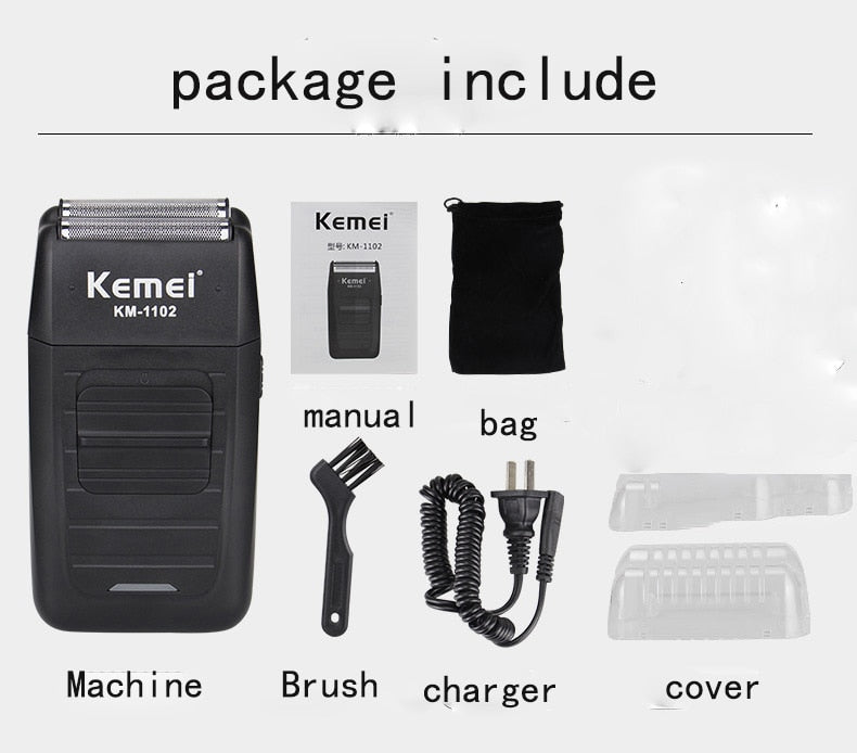 Kemei KM-1102 Rechargeable Cordless Shaver for Men Twin Blade Reciprocating Beard Razor Face Care Multifunction Strong Trimmer