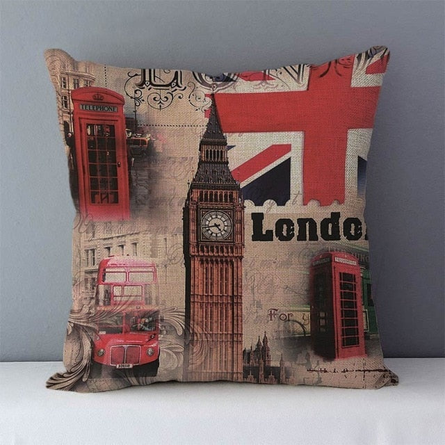 Retro Nostalgic couch cushion home decorative pillows London Paris scenic printed square 45x45cm pillowcase seat back cushions
