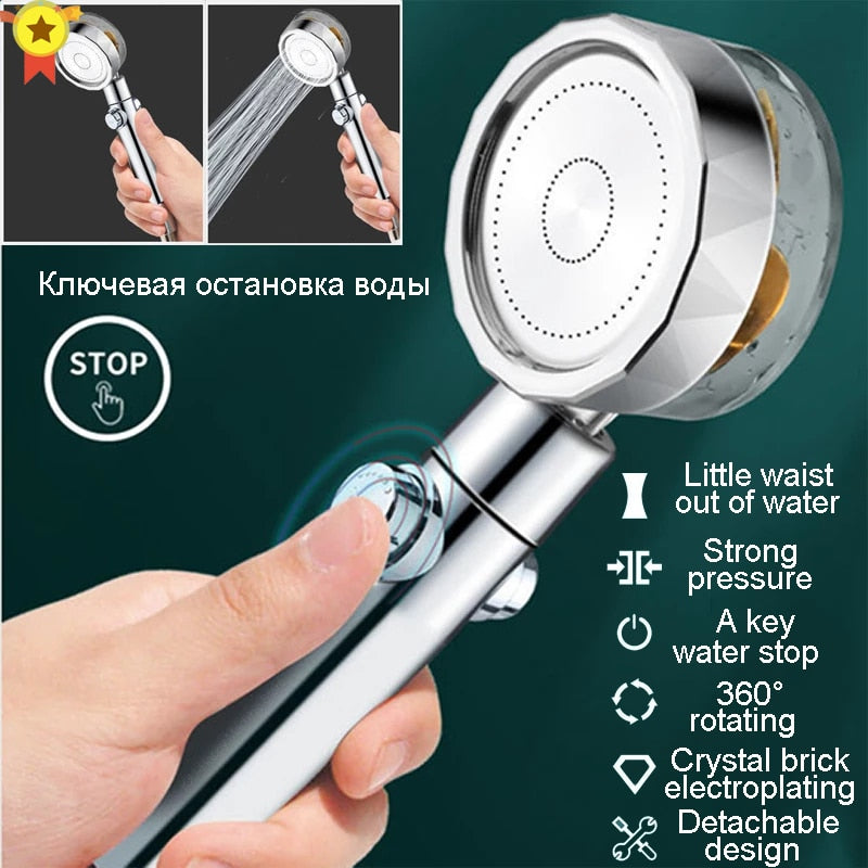 Shower Head Water Saving Flow 360 Degrees Rotating With Small Fan ABS Rain High Pressure Spray Nozzle Bathroom Accessories