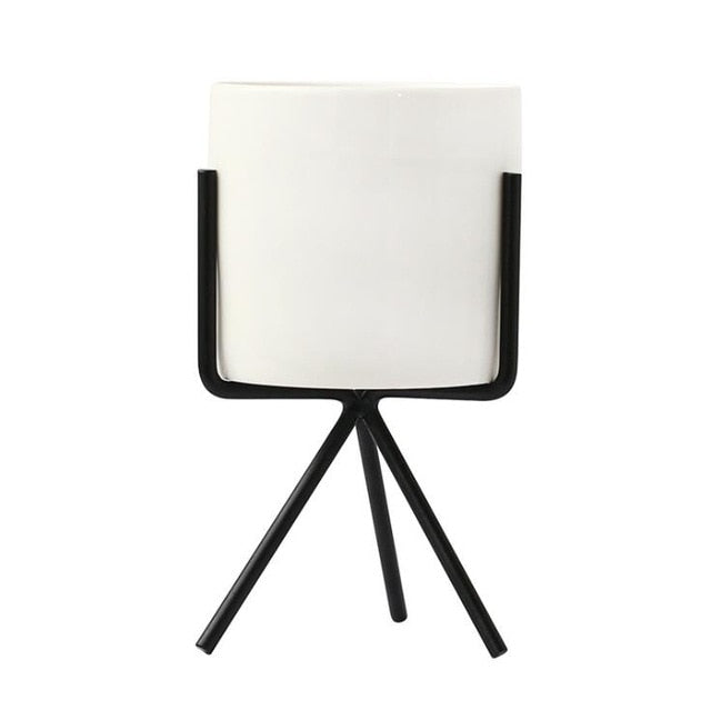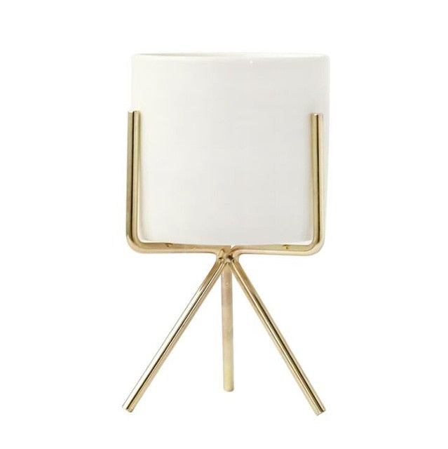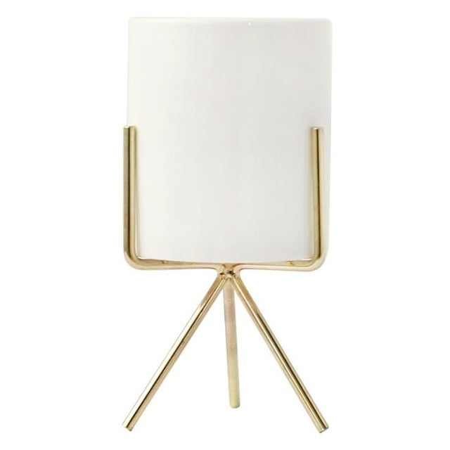 Home Fashion Style Ceramic Flower Pot Planter Gold Iron Frame Flower Plant Holder Succulent Pot Office Desktop Ornament