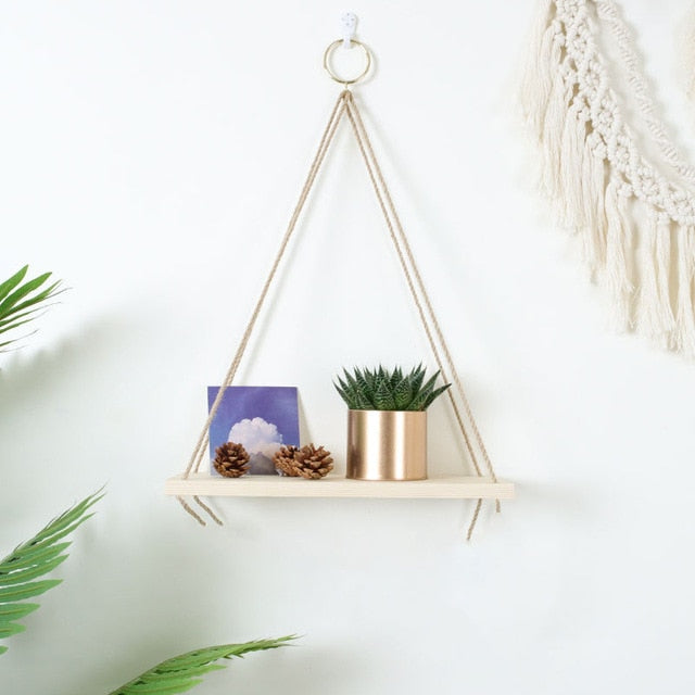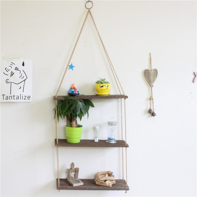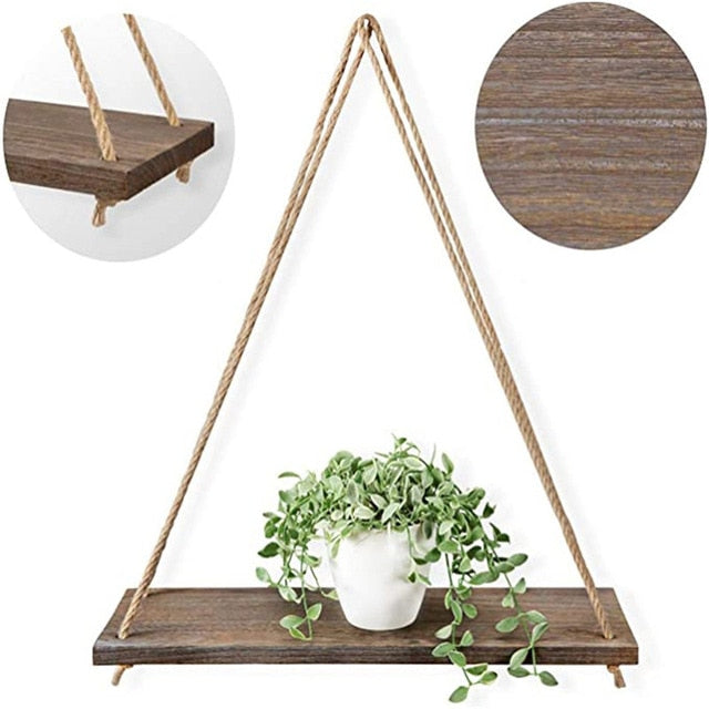 Wall Decorative Shelf Household Wall Wood Swing Hanging Rope indoor Mounted Floating Shelves Plant Flower Pot outdoor decoration