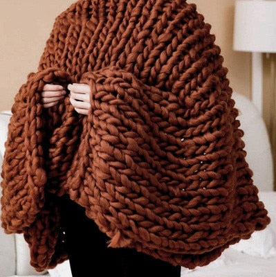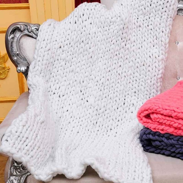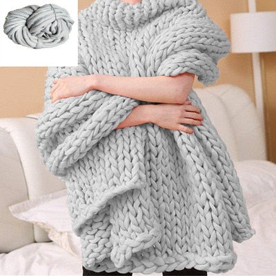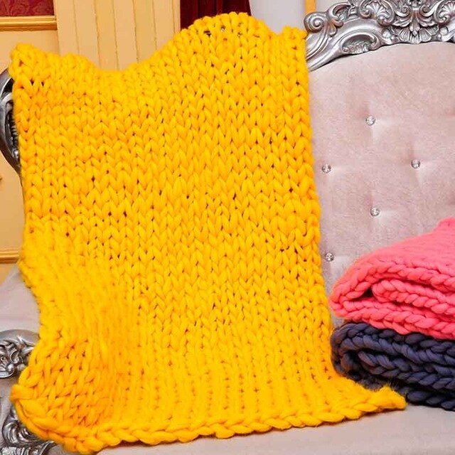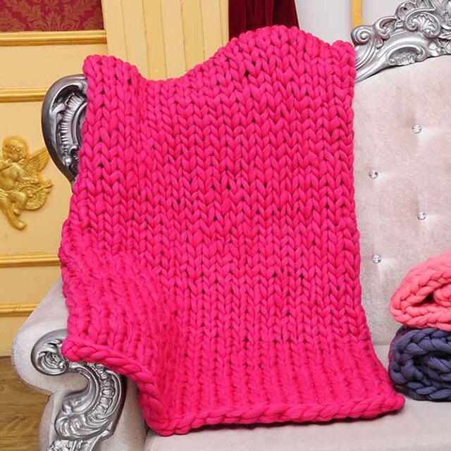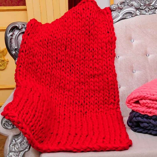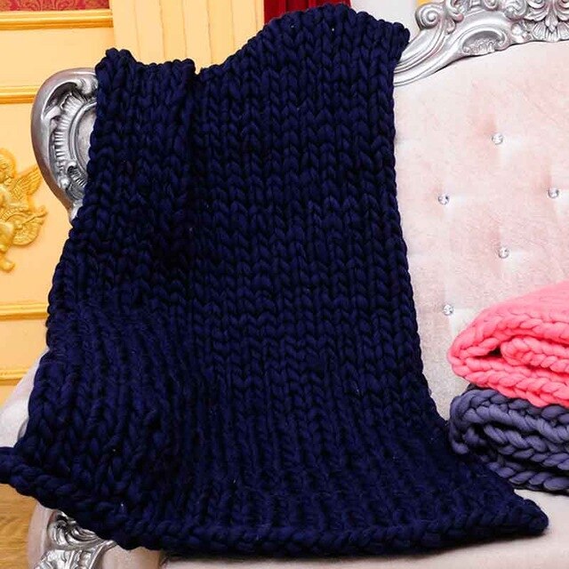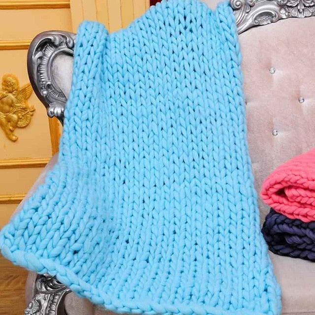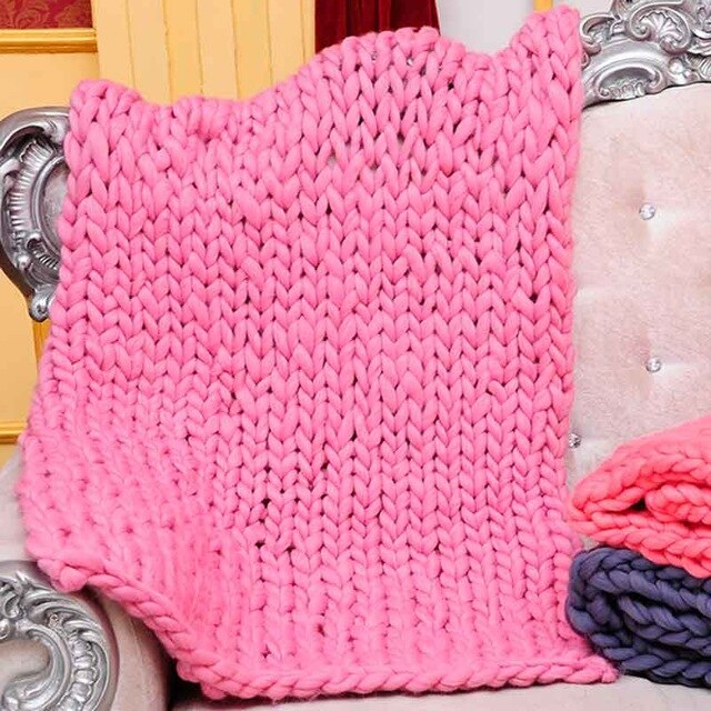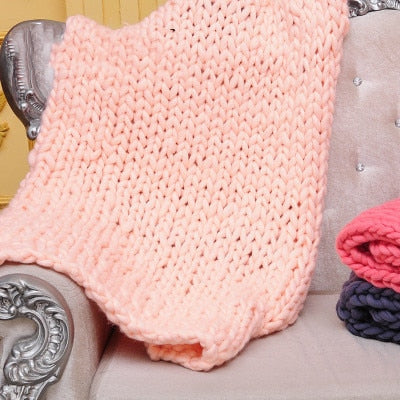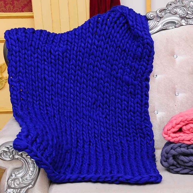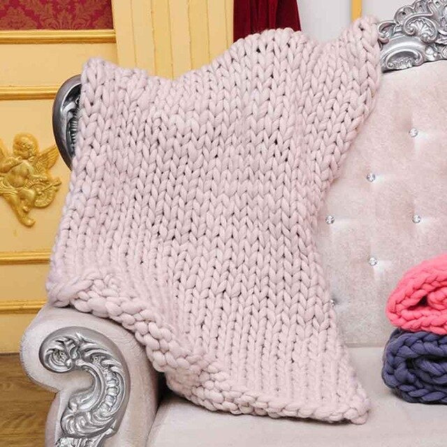 Wool Yarn Blanket Thick Soft Hand Chunky Knitted Plaids Throw Blankets Bed Sofa Covers Nordic Home Textile DropShipping 60x60cm